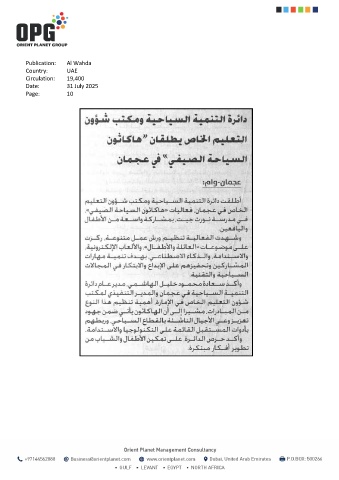 Publication: Al Wahda Country: UAE Circulation: 19,400 Date: 31 July 2025 Page: 10