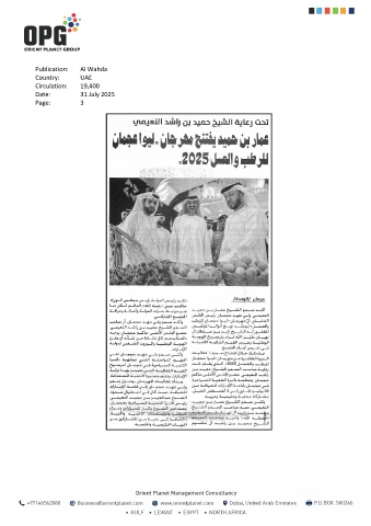 Publication: Al Wahda Country: UAE Circulation: 19,400 Date: 31 July 2025 Page: 3
