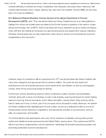 7/30/25, 10:37 AM 10th Liwa Ajman Dates and Honey Festival to kick off tomorrowfeaturing diverse competitions and performances - Middle East Ne…