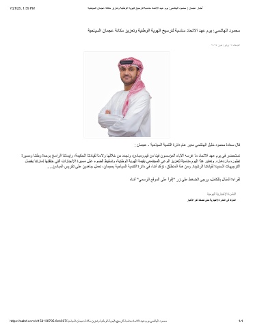 : نﺎﻤﺠﻋ - ﺔﯿﺣﺎﯿﺴﻟا ﺔﯿﻤﻨﺘﻟا ةﺮﺋاد مﺎﻋ ﺮﯾﺪﻣ ﻲﻤﺷﺎﮭﻟا ﻞﯿﻠﺧ دﻮﻤﺤﻣ ةدﺎﻌﺳ لﺎﻗ