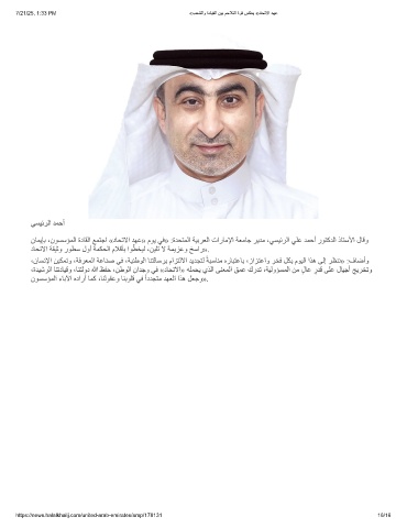 نﺎﻤﯾﺈﺑ ،نﻮﺴﺳﺆﻤﻟا ةدﺎﻘﻟا ﻊﻤﺘﺟا «دﺎﺤﺗﻻا ﺪﮭﻋ» مﻮﯾ ﻲﻓ» :ةﺪﺤﺘﻤﻟا ﺔﯿﺑﺮﻌﻟا تارﺎﻣﻹا ﺔﻌﻣﺎﺟ ﺮﯾﺪﻣ ،ﻲﺴﯿﺋﺮﻟا ﻲﻠﻋ ﺪﻤﺣأ رﻮﺘﻛﺪﻟا ذﺎﺘﺳﻷا لﺎﻗو