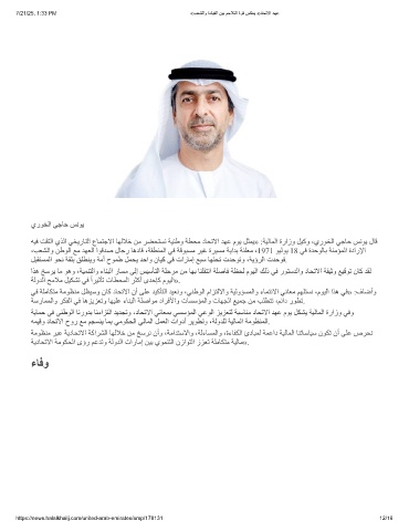 ﮫﯿﻓ ﺖﻘﺘﻟا يﺬﻟا ﻲﺨﯾرﺎﺘﻟا عﺎﻤﺘﺟﻻا ﺎﮭﻟﻼﺧ ﻦﻣ ﺮﻀﺤﺘﺴﻧ ﺔﯿﻨطو ﺔﻄﺤﻣ دﺎﺤﺗﻻا ﺪﮭﻋ مﻮﯾ ﻞﺜﻤﯾ» :ﺔﯿﻟﺎﻤﻟا ةرازو ﻞﯿﻛو ،يرﻮﺨﻟا ﻲﺟﺎﺣ ﺲﻧﻮﯾ لﺎﻗ