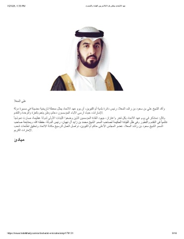 ﺔﻟود ةﺮﯿﺴﻣ ﻲﻓ ﺔﺌﯿﻀﻣ ﺔﯿﺨﯾرﺎﺗ ﺔﻄﺤﻣ ﻞﺜﻤﯾ دﺎﺤﺗﻻا ﺪﮭﻋ مﻮﯾ نأ ،ﻦﯾﻮﯿﻘﻟا مأ ﺔﯾﺪﻠﺑ ةﺮﺋاد ﺲﯿﺋر ،ﻼﻌﻤﻟا ﺪﺷار ﻦﺑ دﻮﻌﺳ ﻦﺑ ﻲﻠﻋ ﺦﯿﺸﻟا ﺪﻛأو