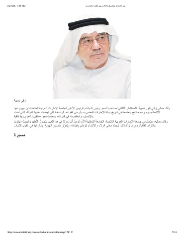 ﺪﮭﻋ مﻮﯾ» نأ ،ةﺪﺤﺘﻤﻟا ﺔﯿﺑﺮﻌﻟا تارﺎﻣﻹا ﺔﻌﻣﺎﺠﻟ ﻰﻠﻋﻷا ﺲﯿﺋﺮﻟاو ﺔﻟوﺪﻟا ﺲﯿﺋر ﻮﻤﺴﻟا ﺐﺣﺎﺼﻟ ﻲﻓﺎﻘﺜﻟا رﺎﺸﺘﺴﻤﻟا ،ﺔﺒﯿﺴﻧ رﻮﻧأ ﻲﻛز ﻲﻟﺎﻌﻣ ﺪﻛأو