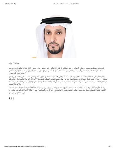 ﺪﮭﻋ مﻮﯾ» نأ ،مﻼﻋﻺﻟ تارﺎﻣﻹا ﺲﻠﺠﻣ ةرادإ ﺲﻠﺠﻣ ﺲﯿﺋر ،مﻼﻋﻺﻟ ﻲﻨطﻮﻟا ﺐﺘﻜﻤﻟا ﺲﯿﺋر ،ﺪﻣﺎﺣ لآ ﻲﻄﺑ ﻦﺑ ﺪﻤﺤﻣ ﻦﺑ ﷲﺪﺒﻋ ﻲﻟﺎﻌﻣ ﺪﻛأو