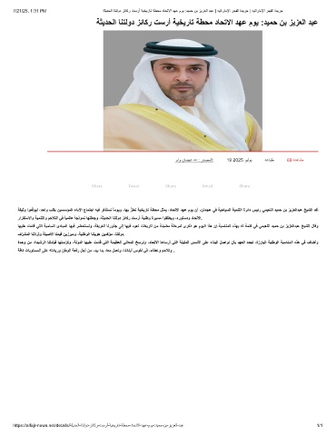 7/21/25, 1:31 PM ﺔﺛﯾدﺣﻟا ﺎﻧﺗﻟود زﺋﺎﻛر تﺳرأ ﺔﯾﺧﯾرﺎﺗ ﺔطﺣﻣ دﺎﺣﺗﻻا دﮭﻋ موﯾ :دﯾﻣﺣ نﺑ زﯾزﻌﻟا دﺑﻋ | ﮫﯾﺗارﺎﻣﻹا رﺟﻔﻟا ةدﯾرﺟ | ﮫﯾﺗارﺎﻣﻹا رﺟﻔﻟا ةدﯾرﺟ