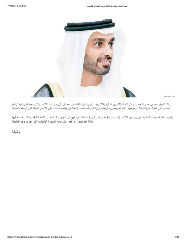 ﺦّﺳرﺗ ﺔﯾﺧﯾرﺎﺗ ﺔطﺣﻣ لّﻛﺷﯾ دﺎﺣﺗﻻا دﮭﻋ موﯾ نأ ،نﺎﻣﺟﻋ ﻲﻓ ﺔﯾﻟﺎﻣﻟا ةرﺋاد سﯾﺋر ،ﺔﯾرادﻹاو ﺔﯾﻟﺎﻣﻟا نوؤﺷﻠﻟ مﻛﺎﺣﻟا لﺛﻣﻣ ،ﻲﻣﯾﻌﻧﻟا دﯾﻣﺣ نﺑ دﻣﺣأ ﺦﯾﺷﻟا دﻛأو