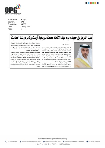 Publication: Al Fajr Country: UAE Circulation: 34,596 Date: 19 July 2025 Page: 5