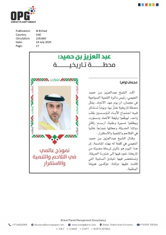 Publication: Al Etihad Country: UAE Circulation: 109,640 Date: 19 July 2025 Page: 17