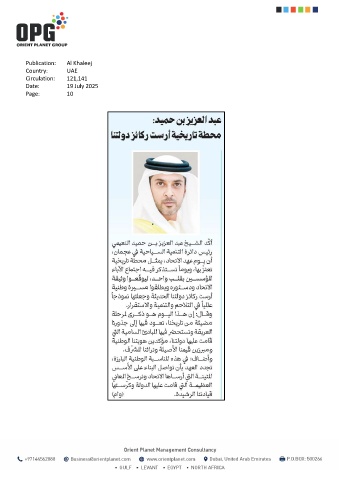 Publication: Al Khaleej Country: UAE Circulation: 121,141 Date: 19 July 2025 Page: 10