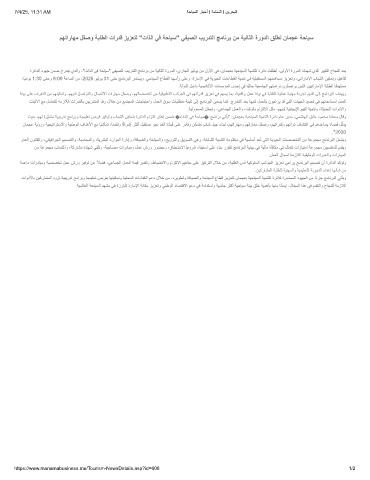 مﮭﺗارﺎﮭﻣ لﻘﺻو ﺔﺑﻠطﻟا تاردﻗ زﯾزﻌﺗﻟ "تاذﻟا ﻲﻓ ﺔﺣﺎﯾﺳ" ﻲﻔﯾﺻﻟا بﯾردﺗﻟا ﺞﻣﺎﻧرﺑ نﻣ ﺔﯾﻧﺎﺛﻟا ةرودﻟا ﻖﻠطﺗ نﺎﻣﺟﻋ ﺔﺣﺎﯾﺳ