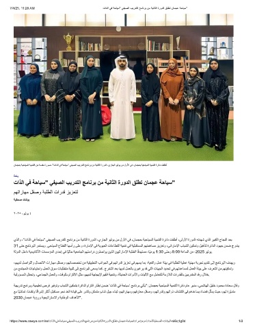 يذﻟاو ،"تاذﻟا ﻲﻓ ﺔﺣﺎﯾﺳ" ﻲﻔﯾﺻﻟا بﯾردﺗﻟا ﺞﻣﺎﻧرﺑ نﻣ ﺔﯾﻧﺎﺛﻟا ةرودﻟا ،يرﺎﺟﻟا وﯾﻟوﯾ نﻣ لوﻷا ﻲﻓ ،نﺎﻣﺟﻌﺑ ﺔﯾﺣﺎﯾﺳﻟا ﺔﯾﻣﻧﺗﻟا ةرﺋاد تﻘﻠطأ ،ﻰﻟوﻷا ةرودﻟا ﮫﺗدﮭﺷ يذﻟا رﯾﺑﻛﻟا حﺎﺟﻧﻟا دﻌﺑ
