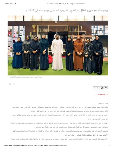 https://www.aletihad.ae/news/تاذﻟا-ﻲﻓ-ﺔﺣﺎﯾﺳ--ﻲﻔﯾﺻﻟا-بﯾردﺗﻟا-ﺞﻣﺎﻧرﺑ-ﻖﻠطﺗ--نﺎﻣﺟﻋ-ﺔﺣﺎﯾﺳ-/4587551/يدﺎﺻﺗﻗﻻا 1/2