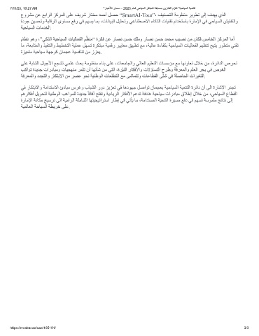 7/11/25, 10:27 AM “رﺎﺑﺧﻸﻟ رﺎﺑﺳﻣ – 2025 مﺎﻌﻟ ﻲﺣﺎﯾﺳﻟا رﻛﺗﺑﻣﻟا ﺔﻘﺑﺎﺳﻣﺑ نﯾزﺋﺎﻔﻟا م ّ رﻛﺗ ”ﺔﯾﺣﺎﯾﺳﻟا ﺔﯾﻣﻧﺗﻟا
