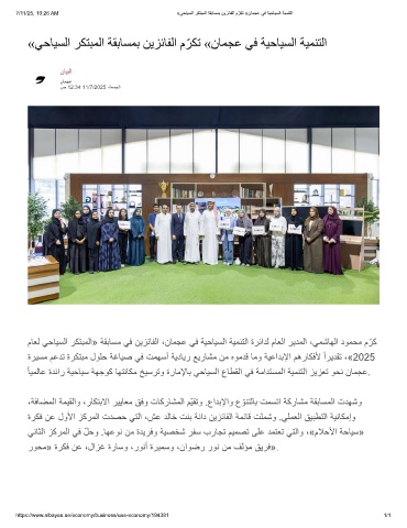 7/11/25, 10:26 AM «ﻲﺣﺎﯾﺳﻟا رﻛﺗﺑﻣﻟا ﺔﻘﺑﺎﺳﻣﺑ نﯾزﺋﺎﻔﻟا م ّ رﻛﺗ «نﺎﻣﺟﻋ ﻲﻓ ﺔﯾﺣﺎﯾﺳﻟا ﺔﯾﻣﻧﺗﻟا