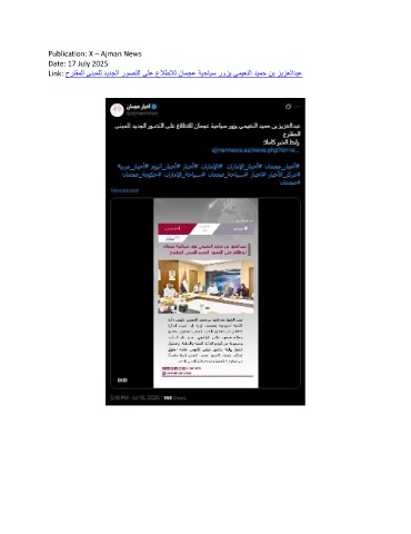 Publication: X – Ajman News Date: 17 July 2025 Link: حرتقملا ىنبملل ديدجلا روصتلا ىلع علاطلال نامجع ةيحايس روزي يميعنلا ديمح نب زيزعلادبع