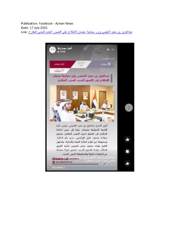 Publication: Facebook - Ajman News Date: 17 July 2025 Link: حرتقملا ىنبملل ديدجلا روصتلا ىلع علاطلال نامجع ةيحايس روزي يميعنلا ديمح نب زيزعلادبع