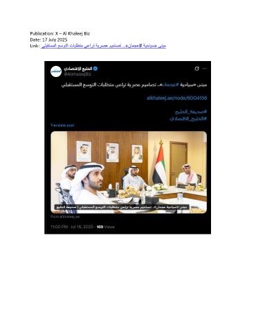 Publication: X – Al Khaleej Biz Date: 17 July 2025 Link: يلبقتسملا عسوتلا تابلطتم يعارت ةيرصع ميماصت ..»نامجع# ةيحايس« ىنبم