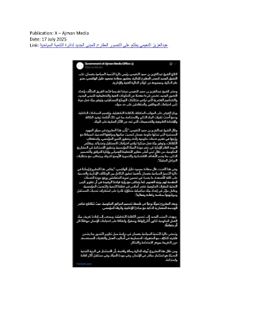 Publication: X – Ajman Media Date: 17 July 2025 Link: ةيحايسلا ةيمنتلا ةرئادل ديدجلا ىنبملل حرتقملا روصتلا ىلع علطي يميعنلا زيزعلادبع