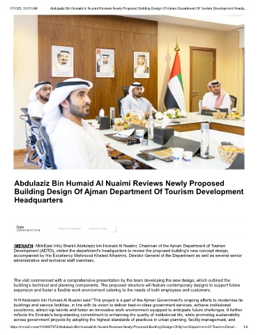https://menafn.com/1109807972/Abdulaziz-Bin-Humaid-Al-Nuaimi-Reviews-Newly-Proposed-Building-Design-Of-Ajman-Department-Of-Tourism-Devel… 1/2