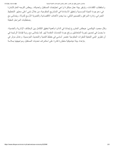 ،ﺔﯾﻣدﺧﻟاو ﺔﯾرادﻹا فﺋﺎظوﻟا نﯾﺑ لﻣﺎﻛﺗﻟا ﻖﯾﻘﺣﺗ ﺔﯾﻣھﺄﺑ ةرﺋادﻟا ﻲﻓ ﺎﻧﻧﺎﻣﯾإ عورﺷﻣﻟا سﻛﻌﯾ» :ﻲﻣﺷﺎﮭﻟا دوﻣﺣﻣ لﺎﻗو