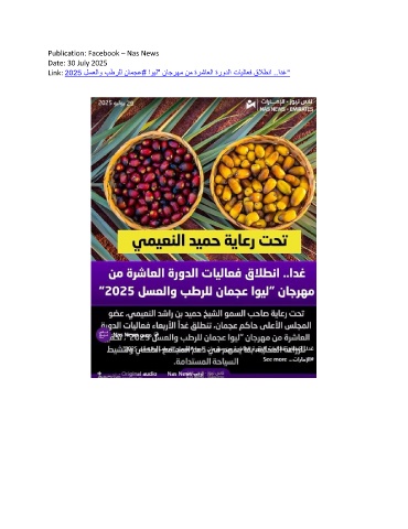 Publication: Facebook – Nas News Date: 30 July 2025 Link: 2025 لسعلاو بطرلل نامجع# اويل" ناجرهم نم ةرشاعلا ةرودلا تايلاعف قلاطنا ..ادغ"