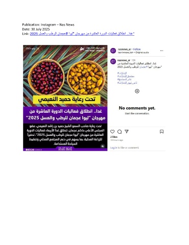 Publication: Instagram – Nas News Date: 30 July 2025 Link: 2025 لسعلاو بطرلل نامجع# اويل" ناجرهم نم ةرشاعلا ةرودلا تايلاعف قلاطنا ..ادغ"