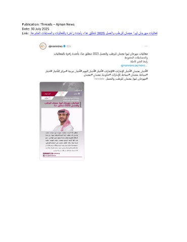 Publication: Threads – Ajman News Date: 30 July 2025 Link: ةعونتملا تاقباسملاو تايلاعفلاب ةرخاز ةدنجأب ،اًدغ قلطنت 2025 لسعلاو بطرلل نامجع اويل ناجرهم تايلاعف