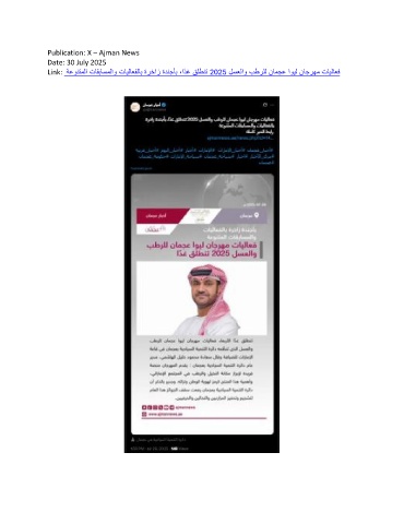 Publication: X – Ajman News Date: 30 July 2025 Link: ةعونتملا تاقباسملاو تايلاعفلاب ةرخاز ةدنجأب ،اًدغ قلطنت 2025 لسعلاو بطرلل نامجع اويل ناجرهم تايلاعف