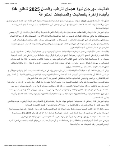 نﺎﻣﺟﻌﺑ ﺔﯾﺣﺎﯾﺳﻟا ﺔﯾﻣﻧﺗﻟا ةرﺋاد ﮫﻣظﻧﺗ يذﻟا ،ةرﺷﺎﻌﻟا ﮫﺗرودﺑ لﺳﻌﻟاو بطرﻠﻟ نﺎﻣﺟﻋ اوﯾﻟ نﺎﺟرﮭﻣ تﺎﯾﻟﺎﻌﻓ ،2025 وﯾﻟوﯾ 30 ءﺎﻌﺑرﻷا ،اًدﻏ ﻖﻠطﻧﺗ