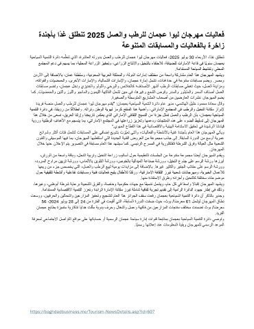 ةيحايسلا ةيمنتلا ةرئاد همظنت يذلا ،ةرشاعلا هترودب لسعلاو بطرلل نامجع اويل ناجرهم تايلاعف ، 2025 ويلوي 30 ءاعبرلأا ،اًدغ قلطنت