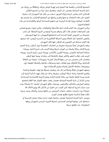 .ﺔﻣاﺪﺘﺴﻤﻟا ﺔﻳدﺎﺼﺘﻗالا ﺔﻴﻤﻨﺘﻟا زﺰﻌﺗو ةﺪﺋاﺮﻟا ةرﺎﻣإلا ﺔﻧﺎﻜﻣ زﺮﺒﺗ ﺔﻠﻣﺎﺷ ﺔﻴﻓﺎﻘﺛ ﺔﺑﺮﺠﺗ ﻢﻳﺪﻘﺗ
