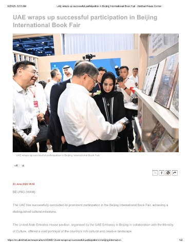 6/25/25, 8:53 AM UAE wraps up successful participation in Beijing International Book Fair - Aletihad News Center