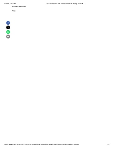 6/19/25, 2:03 PM UAE showcases rich cultural identity at Beijing Internati... academic innovation. WAM https://www.gulftoday.ae/culture/2025/06/18/uae-showcases-rich-cultural-identity-at-beijing-international-book-fair 2/2
