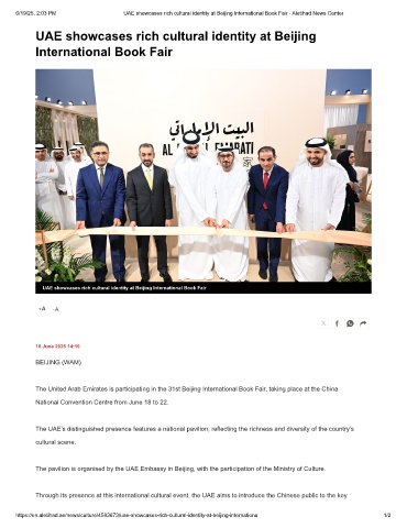 6/19/25, 2:03 PM UAE showcases rich cultural identity at Beijing International Book Fair - Aletihad News Center