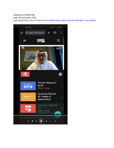Publication: DUBAI ONE Date: 03 November 2025 Link: Dubai One: Union Properties’ Mirdad project sets a new benchmark in real estate