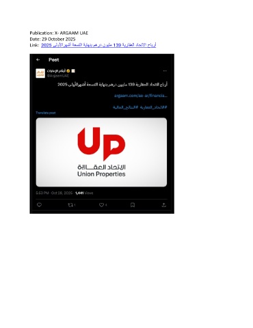 Publication: X- ARGAAM UAE Date: 29 October 2025 Link: 2025 ىلولأارهشأ ةعستلا ةياهنب مهرد نويلم 139 ةيراقعلا داحتلاا حابرأ