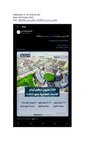 Publication: X- AL KHALEEJ BIZ Date: 29 October 2025 Link: 139 162 ومنب ةيراقعلا_داحتلاا# حابرأ مهرد نويلم%
