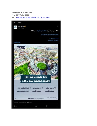 Publication: X- AL KHALEEJ Date: 29 October 2025 Link: 139 162 ومنب ةيراقعلا_داحتلاا# حابرأ مهرد نويلم%