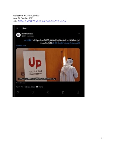 Publication: X- 25H BUSINESS Date: 30 October 2025 Link: ثلاثلا عبرلا يف %577 زفقت ةيتاراملإا ةيراقعلا داحتلاا ةكرش حابرأ 4