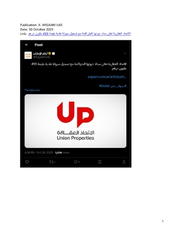 Publication: X- ARGAAM UAE Date: 30 October 2025 Link: مهرد نويلم 455 ةميقب ةيدقن ةلويس ليجست عم ةمكارتملا اهنويد دادس نلعت ةيراقعلا داحتلاا 1