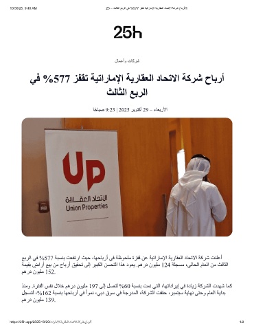 10/30/25, 9:48 AM 25 – ثﻟﺎﺛﻟا ﻊﺑرﻟا ﻲﻓ %577 زﻔﻘﺗ ﺔﯾﺗارﺎﻣﻹا ﺔﯾرﺎﻘﻌﻟا دﺎﺣﺗﻻا ﺔﻛرﺷ حﺎﺑرأH