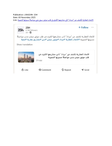 Publication: LINKEDIN- 25H Date: 03 November 2025 ً Link: ةيومنتلا اهت ر بسم ةلصاوم ندب تيس روتوم بلق ف ى ر بكلا اهعيراشم ناث "دادرم" نع فشكت ةيراقعلا داحتلاا ي ي ي ر ي