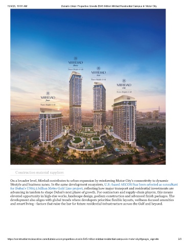 11/4/25, 10:01 AM Dubai’s Union Properties Unveils $545 Million Mirdad Residential Campus in Motor City