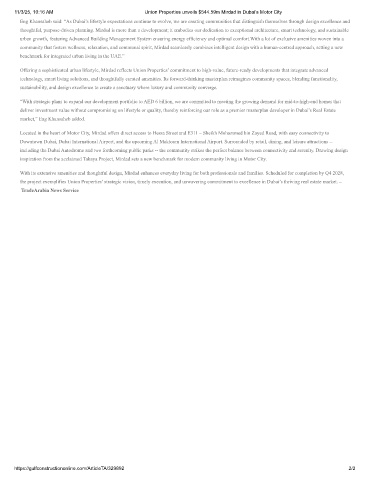 11/3/25, 10:16 AM Union Properties unveils $544.59m Mirdad in Dubai’s Motor City