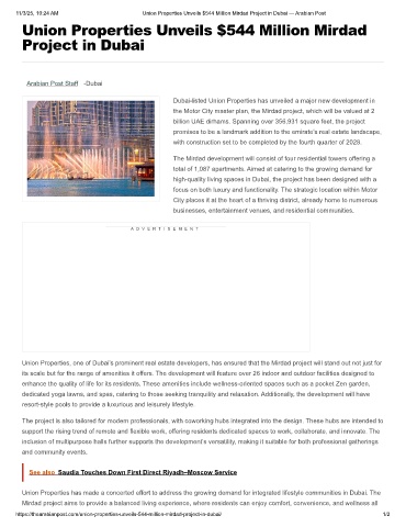 https://thearabianpost.com/union-properties-unveils-544-million-mirdad-project-in-dubai/ 1/2