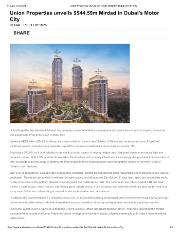 11/3/25, 10:24 AM Union Properties unveils $544.59m Mirdad in Dubai’s Motor City