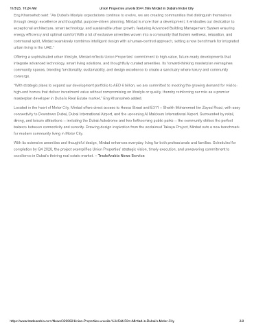 11/3/25, 10:24 AM Union Properties unveils $544.59m Mirdad in Dubai’s Motor City