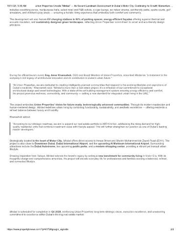 10/31/25, 9:30 AM Union Properties Unveils “Mirdad” — Its Second Landmark Development in Dubai’s Motor City, Continuing Its Growth Momentum …