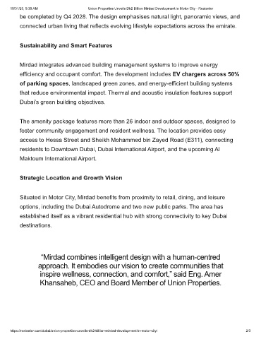 10/31/25, 9:30 AM Union Properties Unveils Dh2 Billion Mirdad Development in Motor City - Realanter